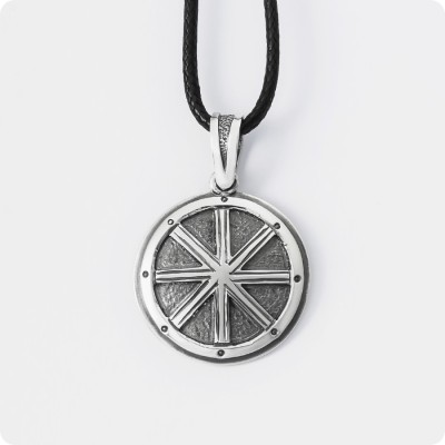 Много лет назад славянские мудрецы открыли людям таинство символа-берега Колесо Сварога, именно тогда люди обрели возможность существовать в единстве с природой. Знак четырех стихий, символ удачи - он помогает человеку жить в умиротворении и свободе, жить по законам природы и традициям пращуров. Такой амулет из серебра дает силы, он способен защитить своего носителя, если сам знак нанесен на щит.